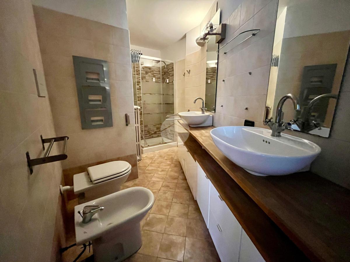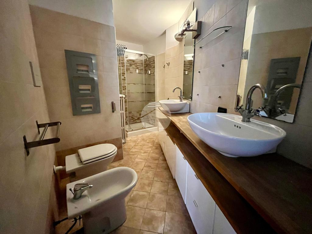 Conclude la soluzione un bagno finestrato con doppio lavello e doccia nuova.