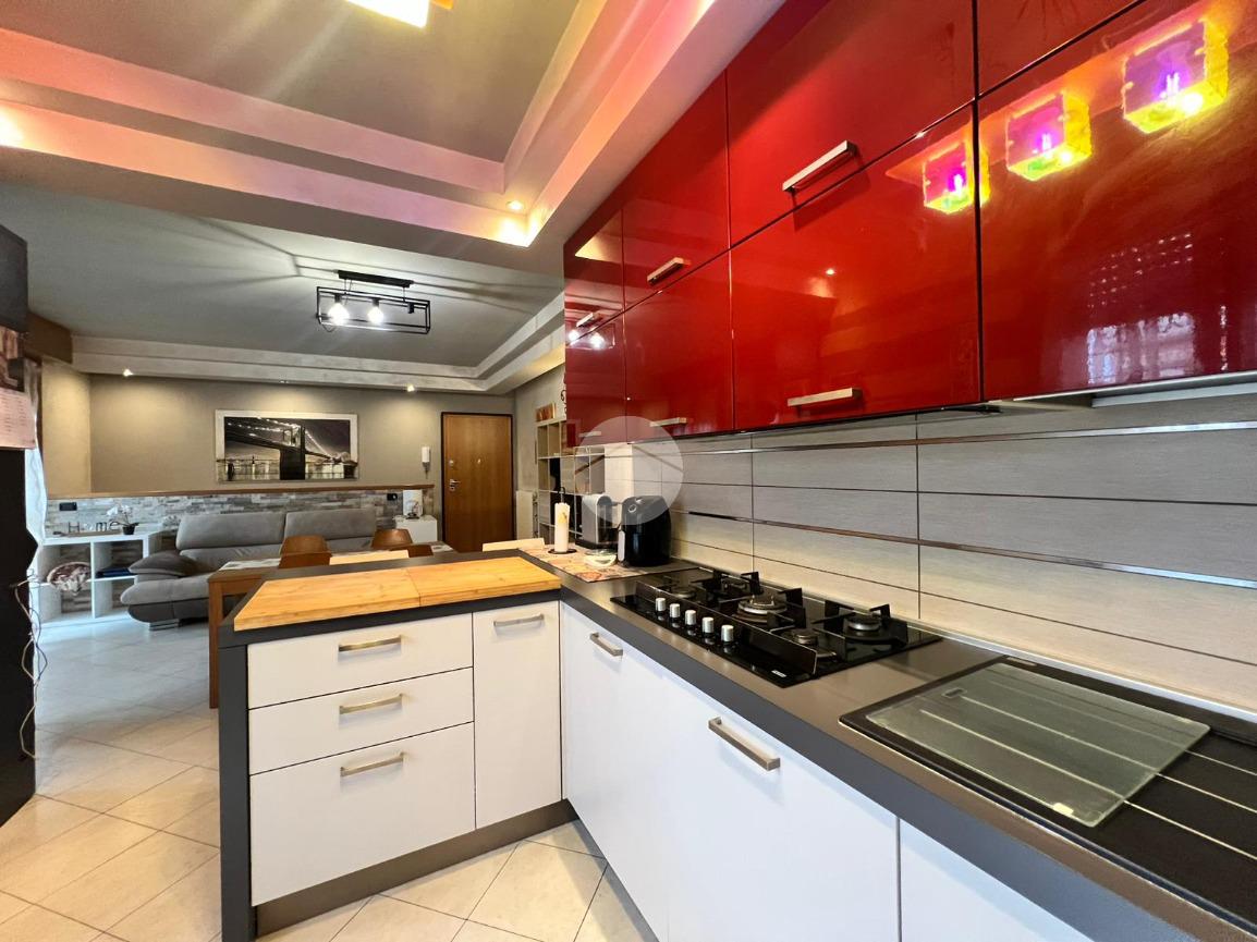 L'immobile è posto al piano terra ed è composto dalla zona giorno open space con cucina a vista molto luminosa impreziosita da una controsoffittatura.